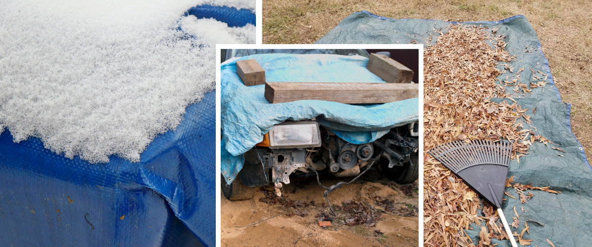 - Prekrytie áut, prívesných vozíkov, prístreškov, materiálu umiestneného vonku, poľnohospodárskych materiálov, dreva alebo bazénov