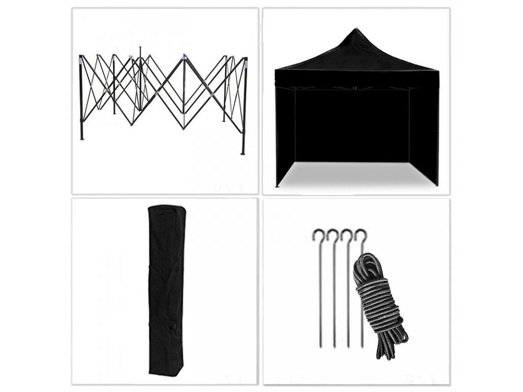 Čierny nožnicový stan 2x3m ALL IN ONE je dokonalým spoločníkom pre vaše vonkajšie aktivity. Jeho štruktúra pozostáva z pevnej a stabilnej konštrukcie s profilom 3x3 cm, ktorá zabezpečuje spoľahlivú podporu. S hrúbkou 0,7 mm je táto konštrukcia dostatočne stabilná.