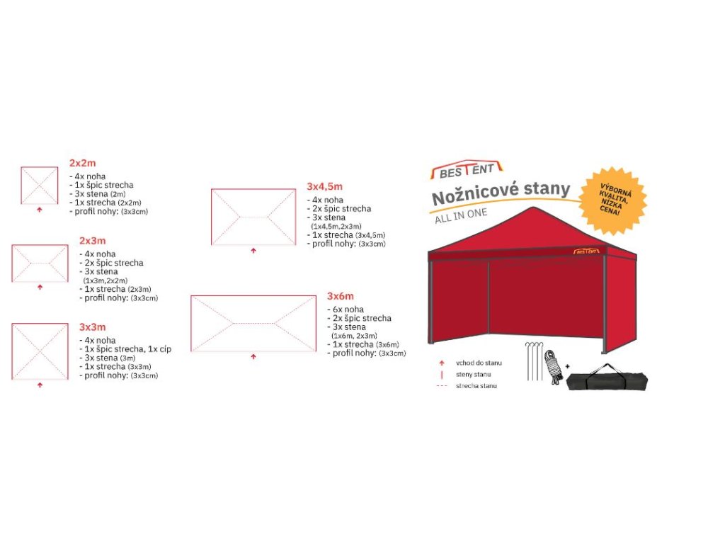 | Rozmer nožnicového stánku | 2 x 3 m |