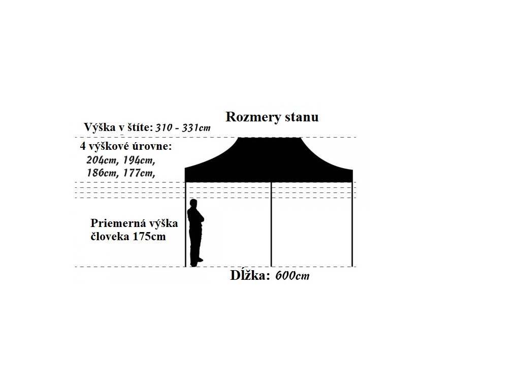 - Výška v najvyššom bode ( v strede stanu): 3 m