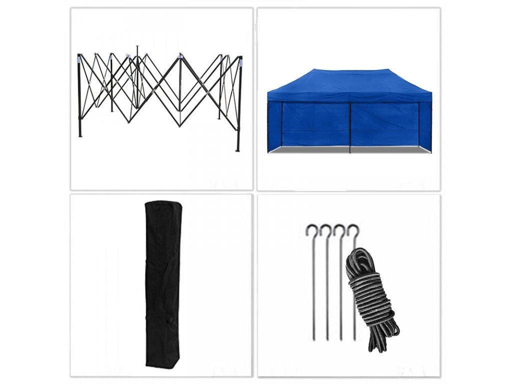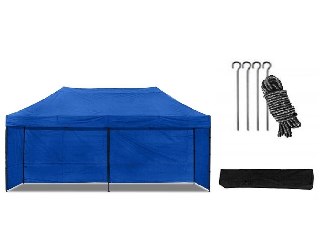Modrý nožnicový stan 3x6m ALL IN ONE je dokonalým spoločníkom pre vaše vonkajšie aktivity. Jeho štruktúra pozostáva z pevnej a stabilnej konštrukcie s profilom 3x3 cm, ktorá zabezpečuje spoľahlivú podporu. S hrúbkou 0,7 mm je táto konštrukcia dostatočne stabilná.