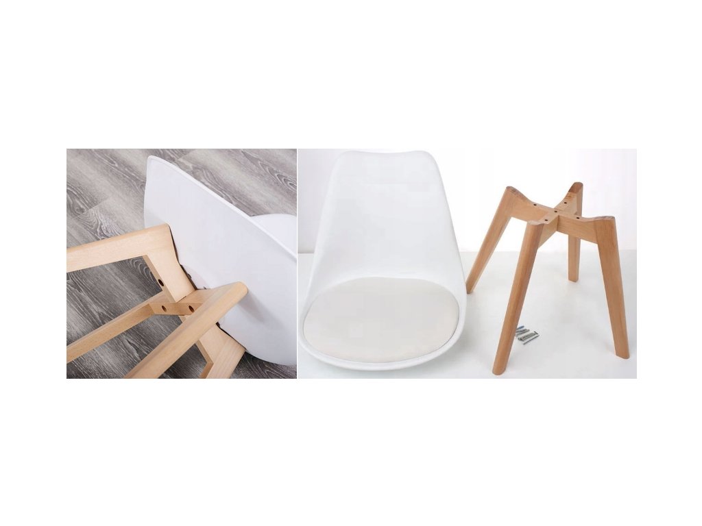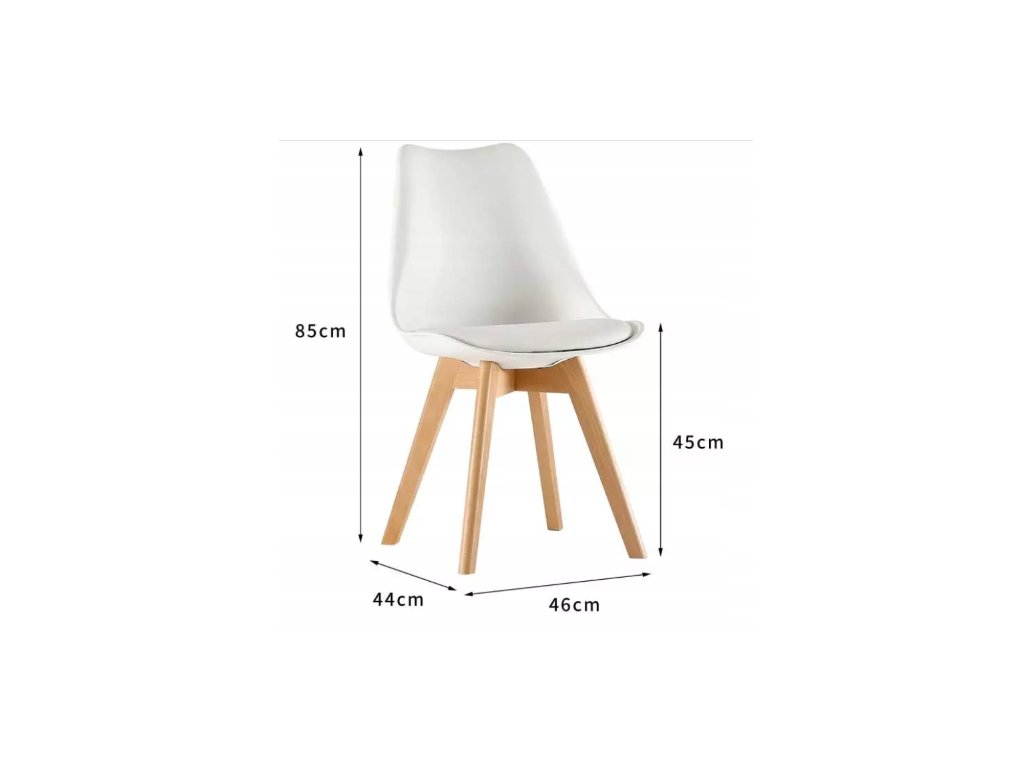 Jedálenská stolička s tvarovaným plastovým sedadlom s nohami z bukového masívu v prírodnom odtieni. Mäkký čalúnený vankúš z ekologickej kože zabezpečí pohodlné sedenie. Materiál je ľahko umývateľný, jednoduchý na údržbu. Vďaka svojmu nezabudnuteľnému dizajnu sú vhodné do kuchyne,na záhradu, terasu ako aj do pracovní.