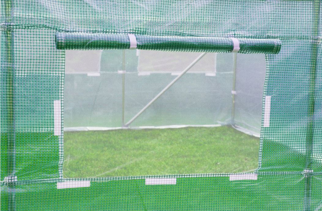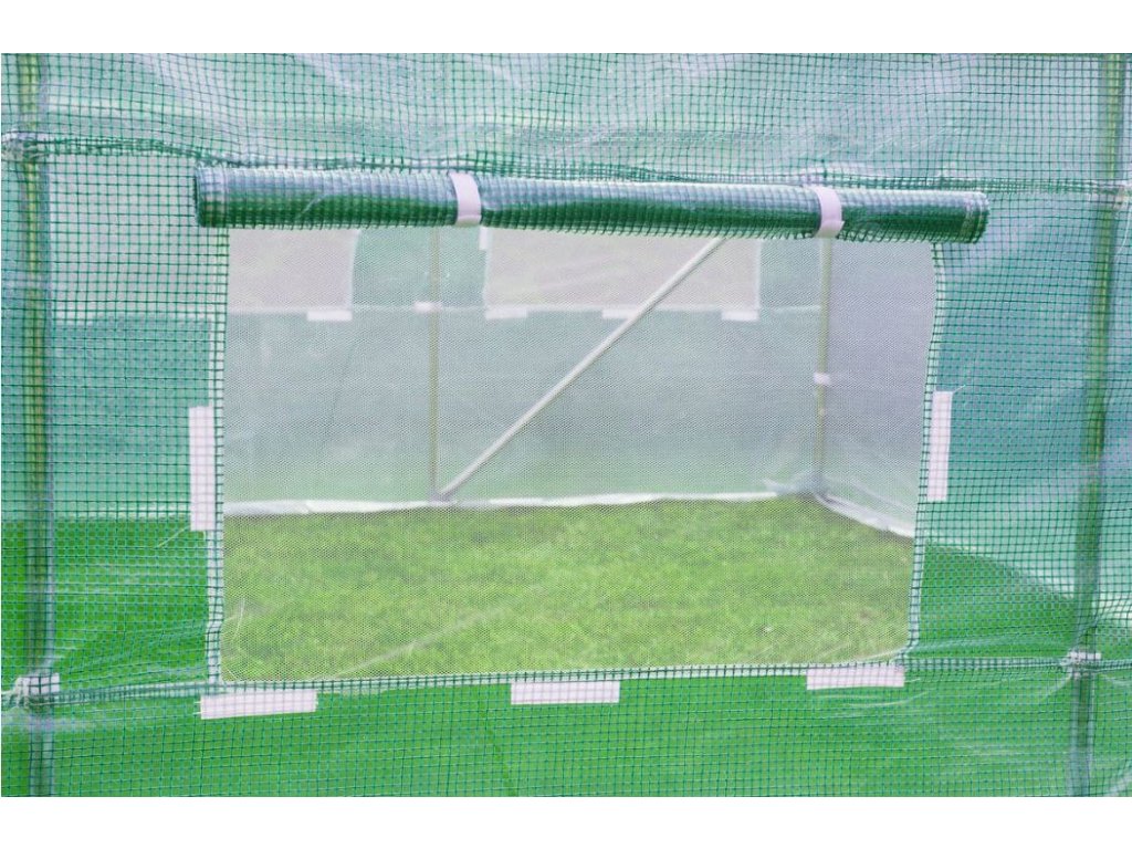Fólia má priedušné a rolovacie okná, ktoré zaisťujú dobrú cirkuláciu vzduchu a vytvárajú optimálnu mikroklímu pre pestovanie akýchkoľvek rastlín. Integrované okno sieťky zabraňuje vniknutiu hmyzu a vtákov do skleníka.