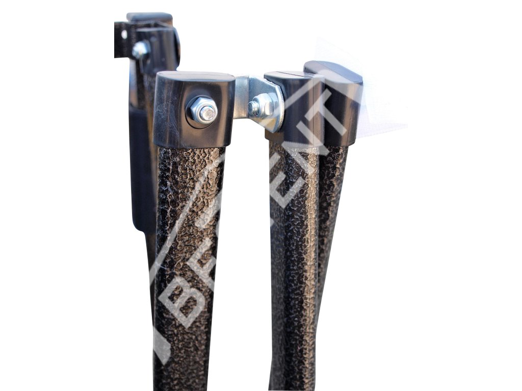 - Nožnicový stan má nohy ukončené tzv. pätkou, ktorá lepšie drží na rôznych povrchoch (či už máte stan na betóne, na tráve či inom povrchu)