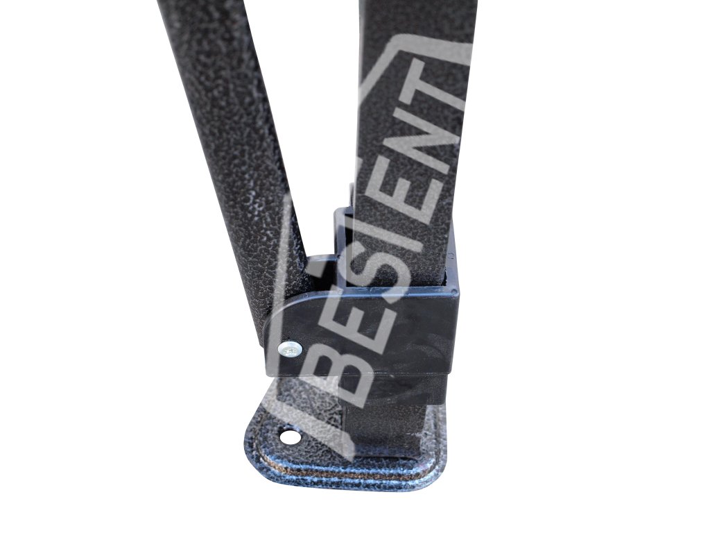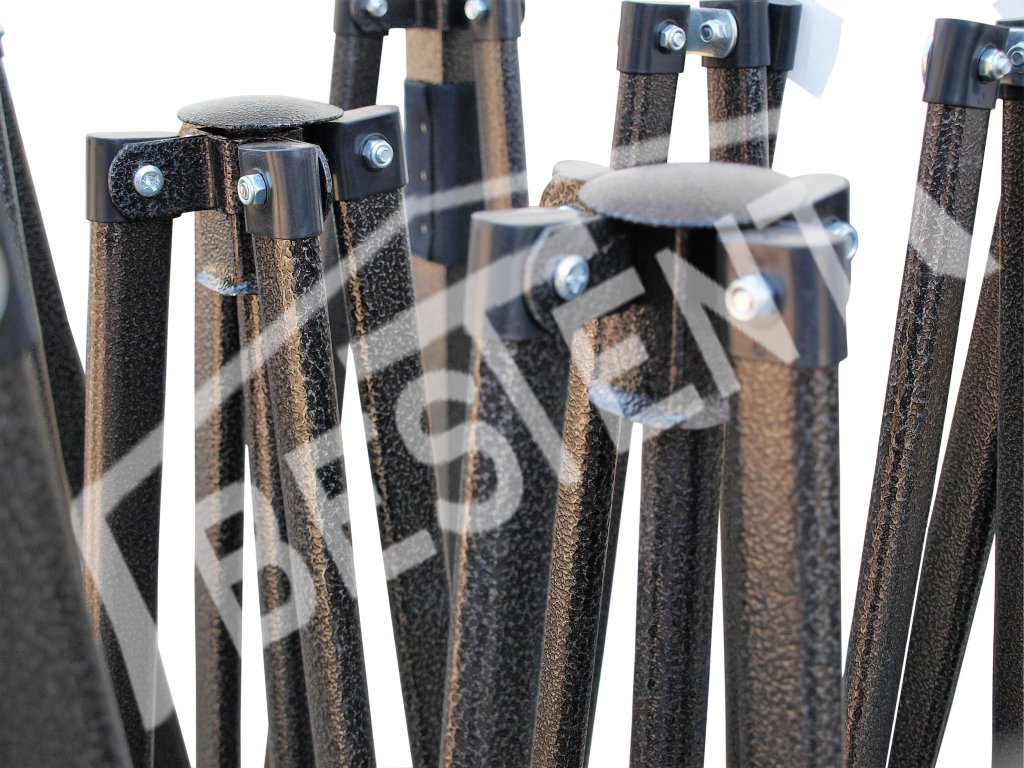 - Nožnicový stan má nohy ukončené tzv. pätkou, ktorá lepšie drží na rôznych povrchoch (či už máte stan na betóne, na tráve či inom povrchu)