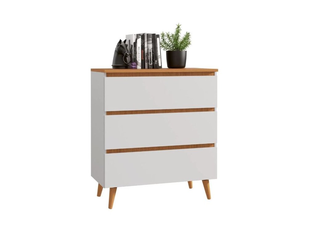 Komoda je praktický kus nábytku, ktorý zapadne do každej miestnosti vo vašej domácnosti. Je dokonalým riešením, ako urobiť z vášho interiéru krásny domov. Komoda je kus nábytku, ktorý nikdy nevyjde z módy v elegantnom škandinávskom štýle. V univerzálnej bielej farbe s praktickým úložným priestorom 3 zásuvkami.