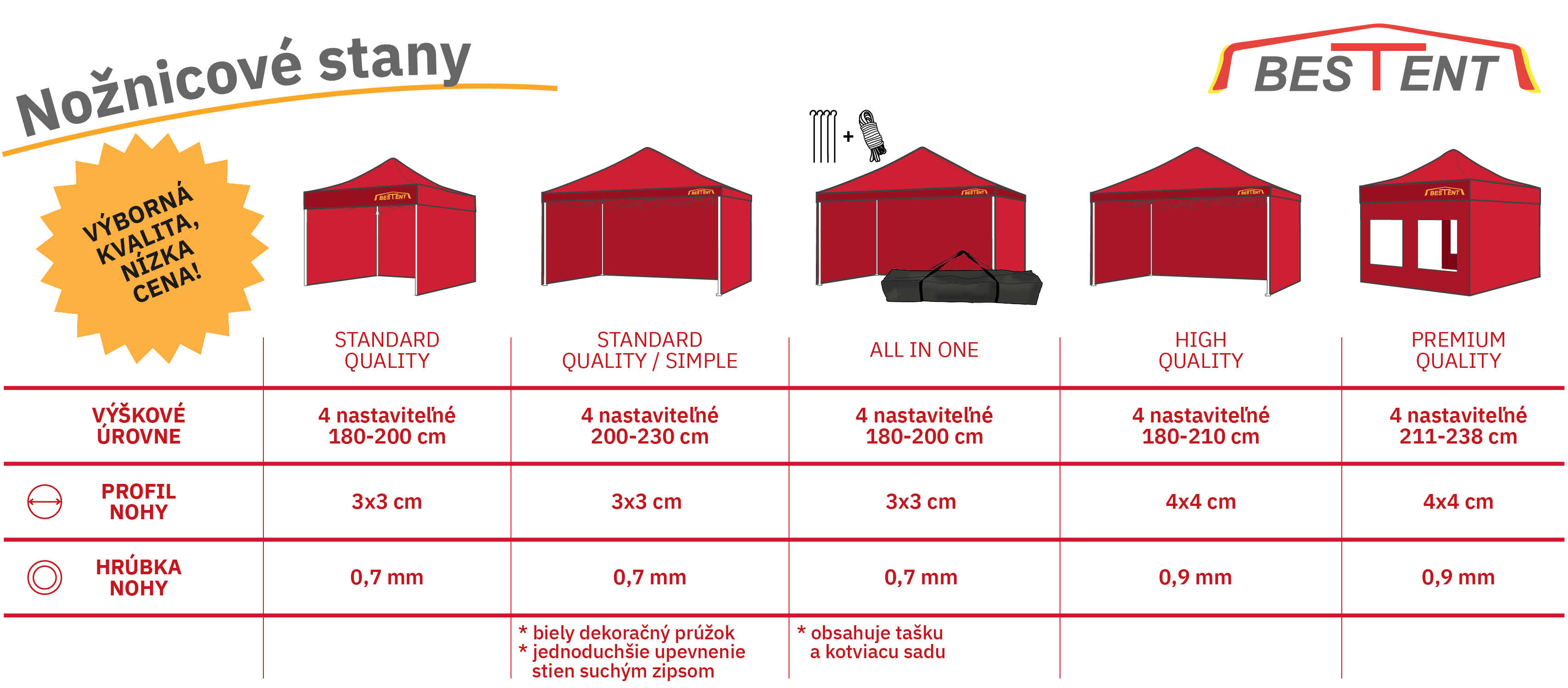 Nožnicový stan 2,5x2,5 červený SQ – Skladom€129,90