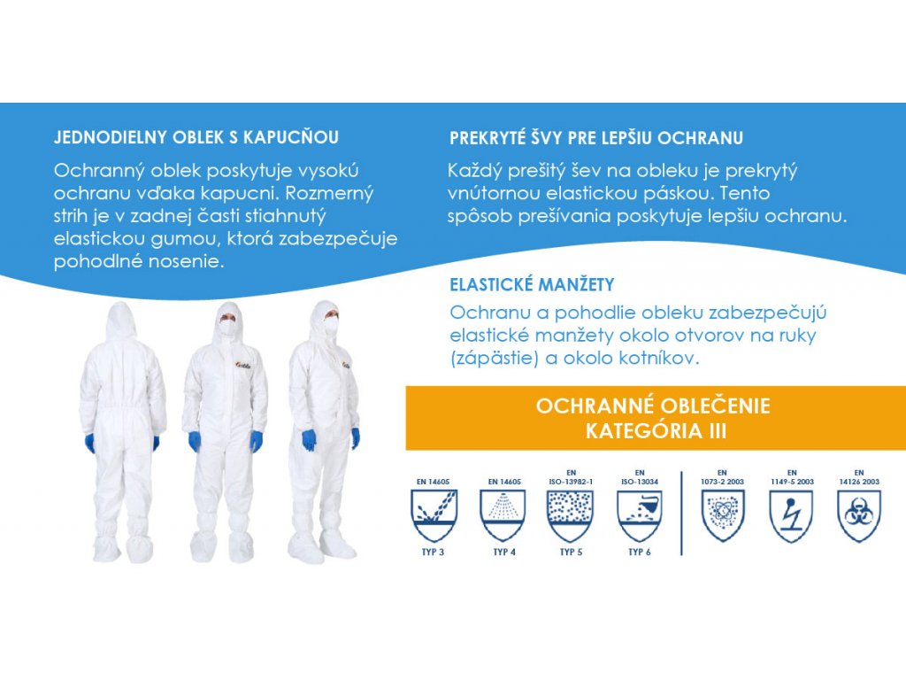 - Oblek zabezpečuje biologickú ochranu - môže sa používať pri kontakte s krvou, telesnými tekutinami, vírusom