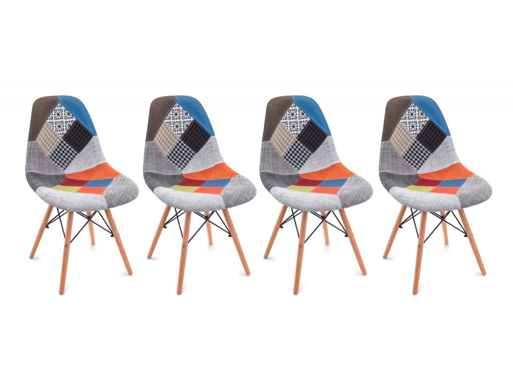 Sada moderných patchworkových stoličkiek zapadne do každej kuchyne, obývacej izby, jedálne, reštaurácie a kancelárie. Stoličky môžete využiť aj ako doplnok v kaderníctve, salóne krásy, obchode a podobne. Farebne zapadnú do každej domácnosti. Sú vyrobená patchworkovou technikou. Sada obsahuje 4 kusy stoličiek.