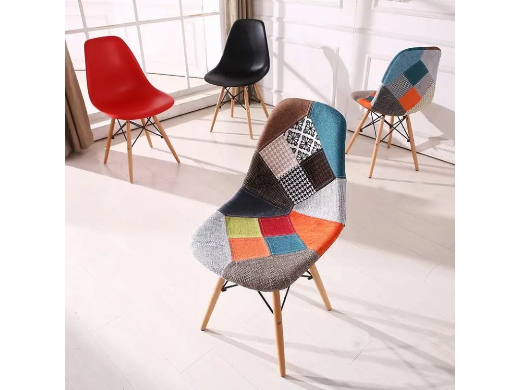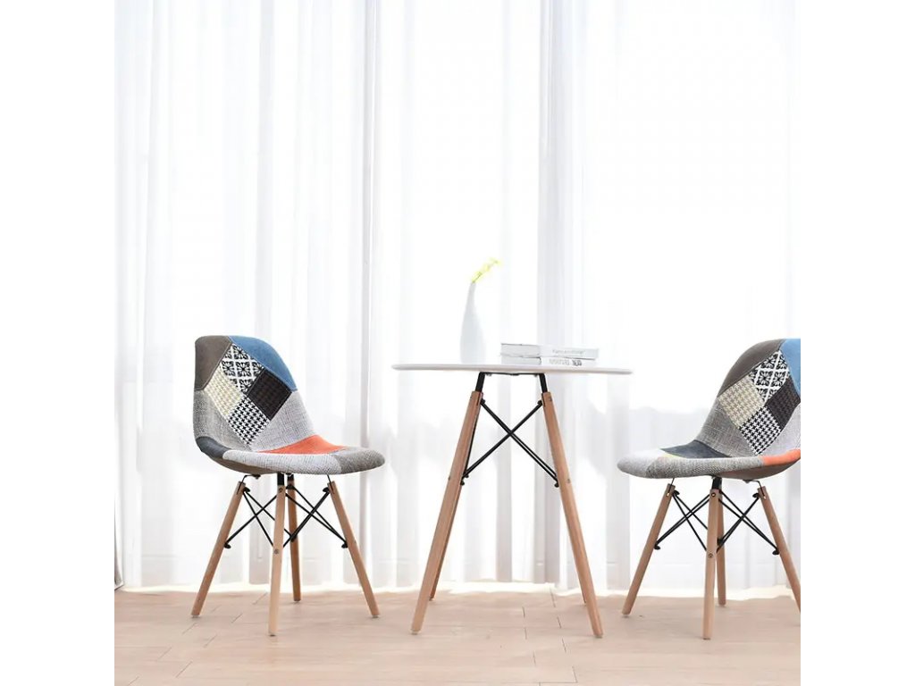 Stoličky sú veľmi ľahko zostaviteľné, sú čiastočne zmontované. Kovové výstuže medzi nožičkami zabezpečujú výbornú stabilitu stoličky. Nožičky sú vyrobené z kvalitného, pevného a odolného bukového dreva. Ergonomicky tvarovaná opierka sa postará o príjemné sedenie a kvalitnú oporu chrbta. Vďaka farebnej patchworkovej koláži stoličky zapadnú do každej domácnosti. Môžete ich použiť ako sadu stoličiek k jedálenskému stolu, k stolu v kaviarni alebo reštaurácii. Okrem toho poslúžia aj ako moderný doplnok, ktorý zaručene oživí priestor a pritiahne zrak návštev alebo zákazníkov.