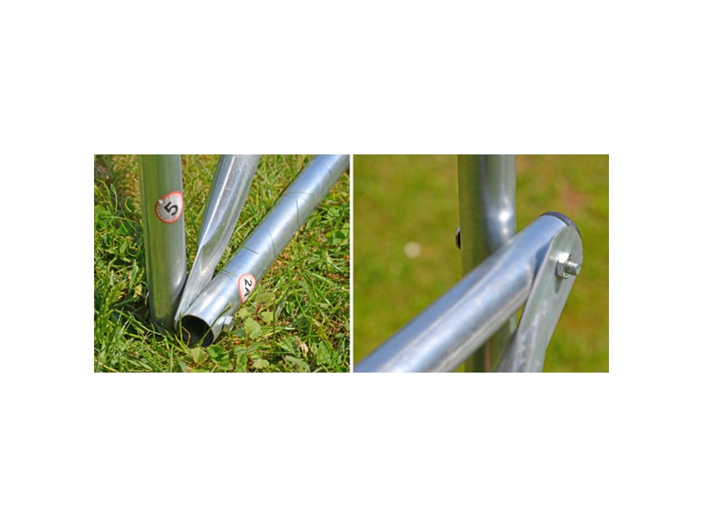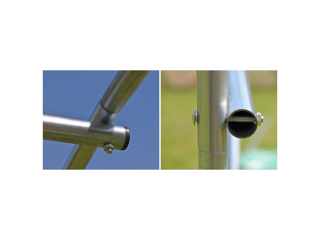 Konštrukcia fóliovníka je pozinkovaná oceľová konštrukcia, ktorá má najstabilnejší profil rúry. Hrúbka 0,7mm a priemer 24mm.