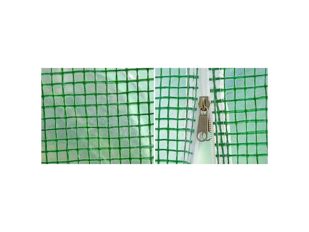 - Kvalitná fólia na fóliovník (agrofólia) z PE materiálu 140g/m2 (polyetylén - materiál s vysokou odolnosťou voči oderu a opotrebeniu) s výstužou zo sieťoviny PP (polypropylén) vybavená UV filtrom