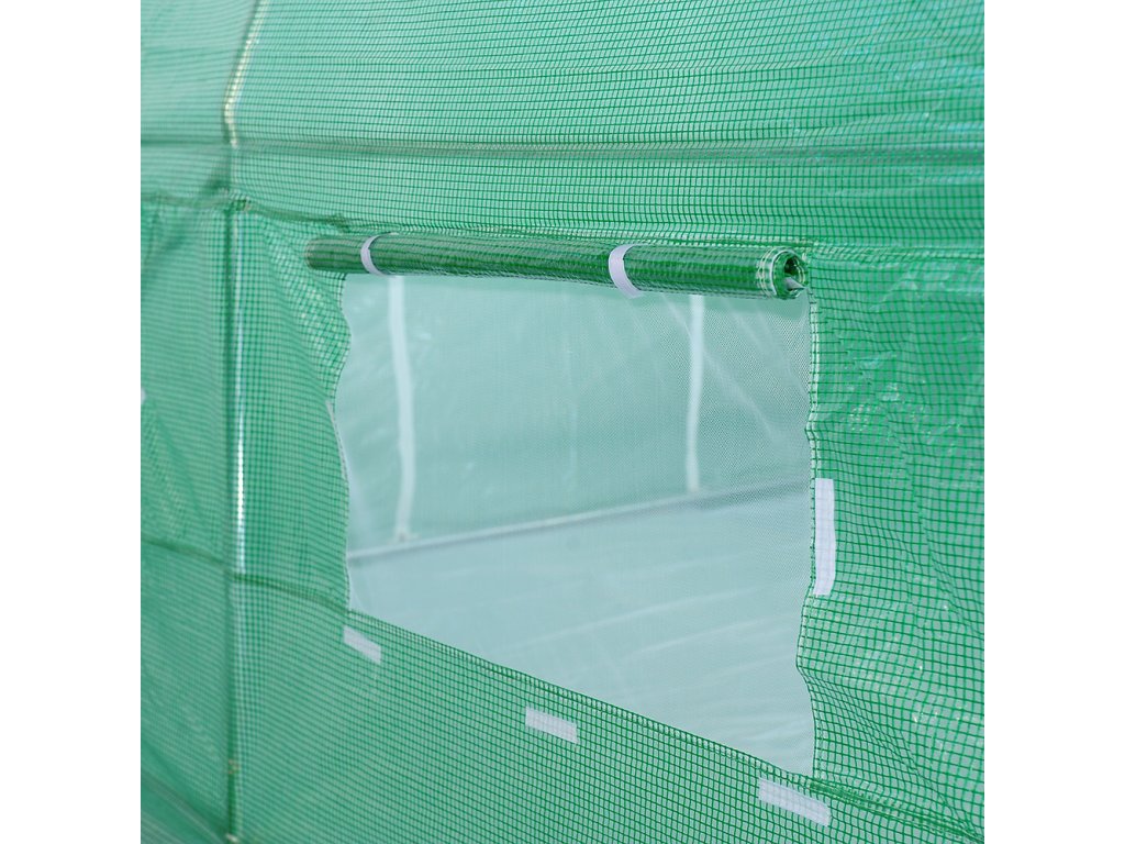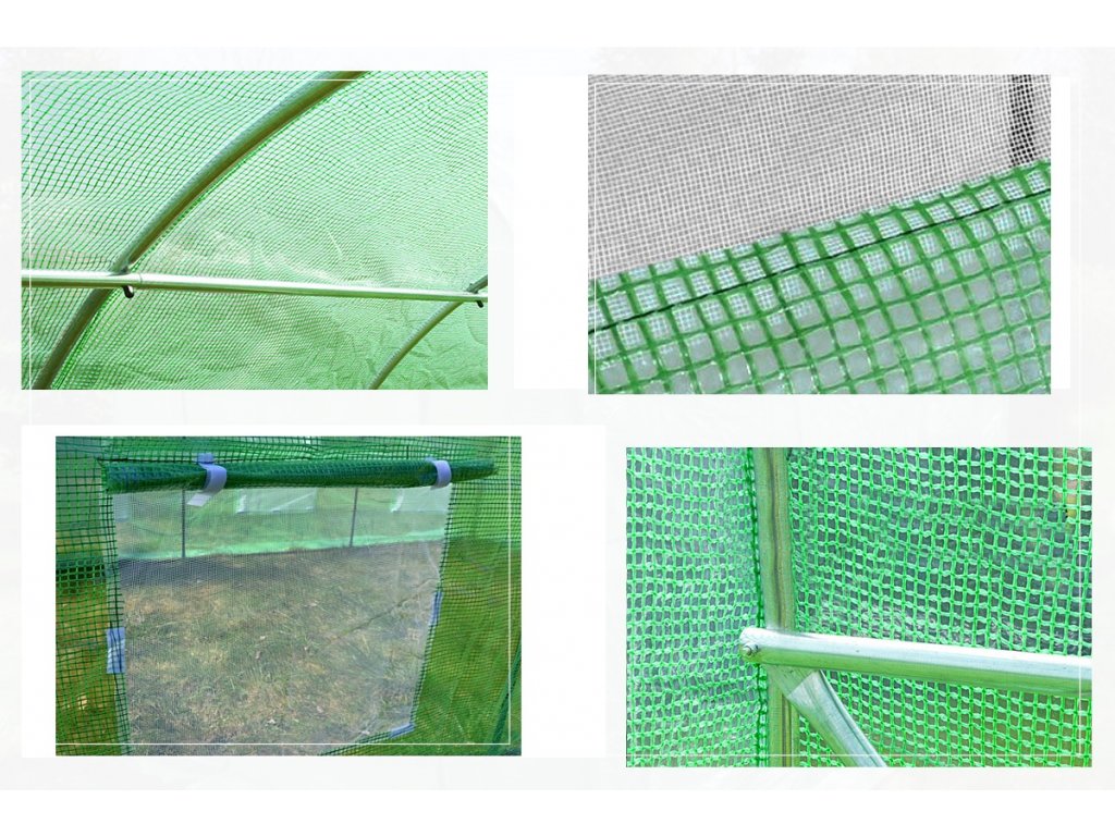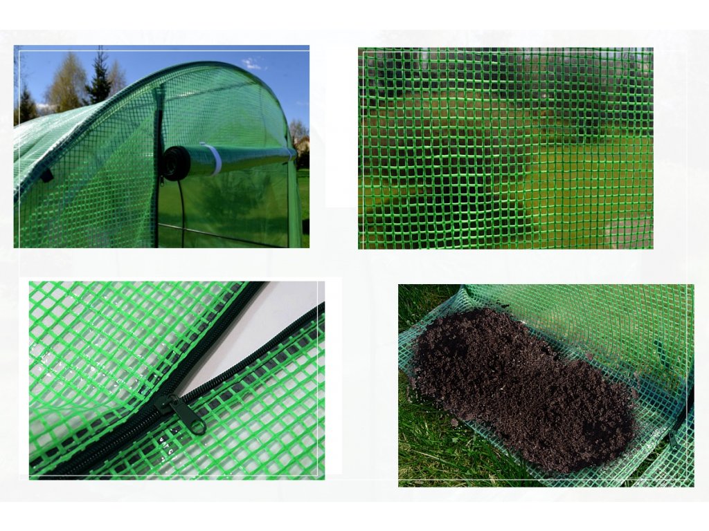 Fóliovník má priedušné a rolovacie okná, ktoré zaisťujú dobrú cirkuláciu vzduchu a vytvárajú optimálnu mikroklímu pre pestovanie akýchkoľvek rastlín. Integrované okno sieťky zabraňuje vniknutiu hmyzu a vtákov do skleníka.