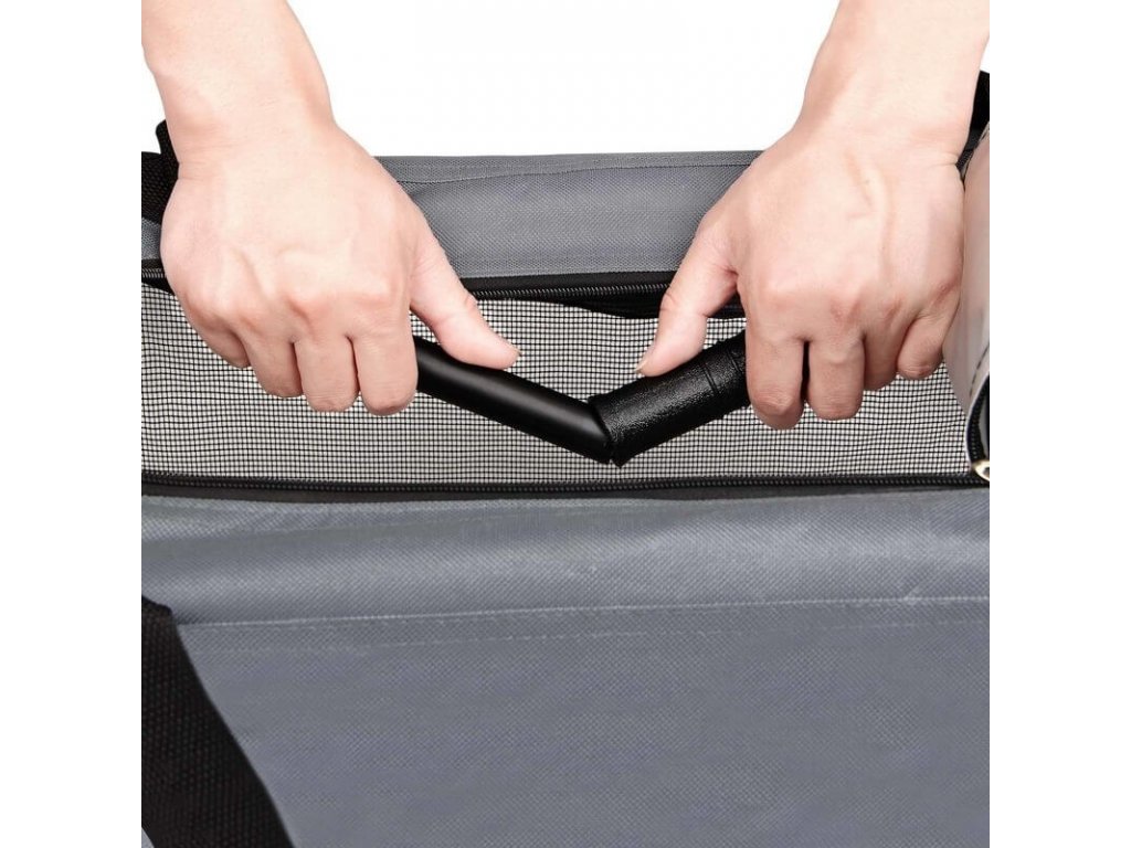 Presun vašich domácich maznáčikov už nebude žiaden problém. Prepravka má pevnú oceľovú konštrukciu s možnosťou skladania, čo zabezpečí bezpečný presun a ľahké skladovanie. Vďaka dvojitej rukoväti môžete tašku pohodlne nosiť v ruke alebo ju používať na prepravu v aute.