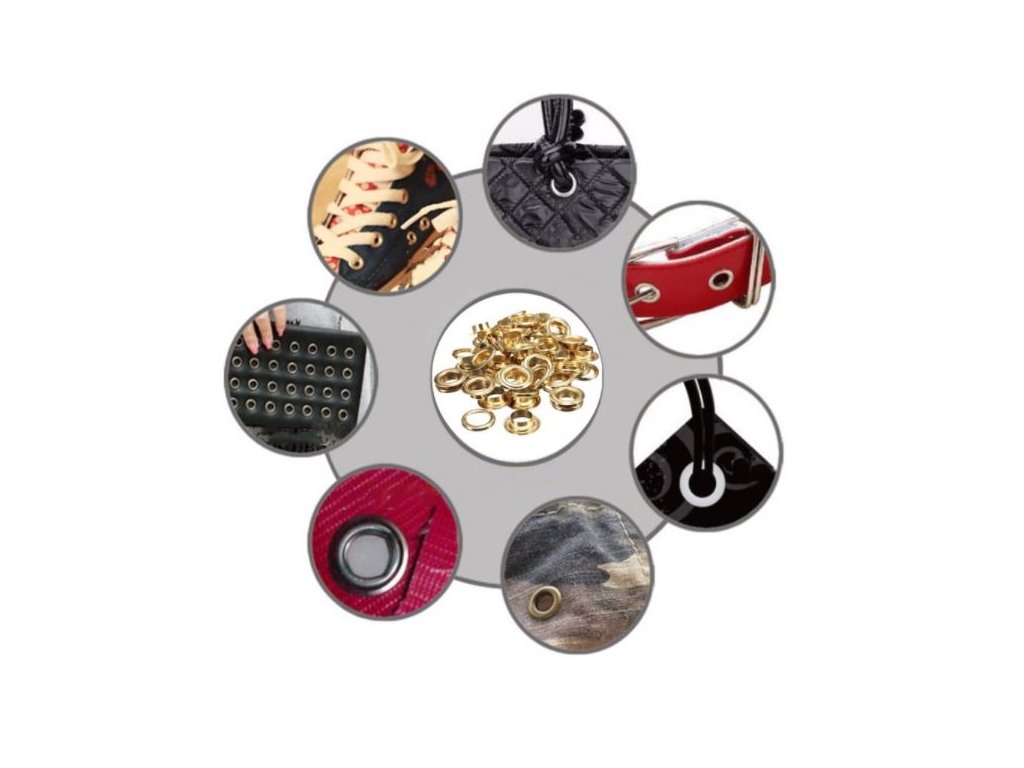 Kvalitné nerezové očká vyrobené z mosadze sú ideálne na vytvorenie a zakončenie otvorov v rôznych materiáloch. Špeciálne navrhnuté na použitie na textil, kožu, obuv a plachty, na pripevnenie krycej plachty k predmetu pomocou lana alebo háčikov.