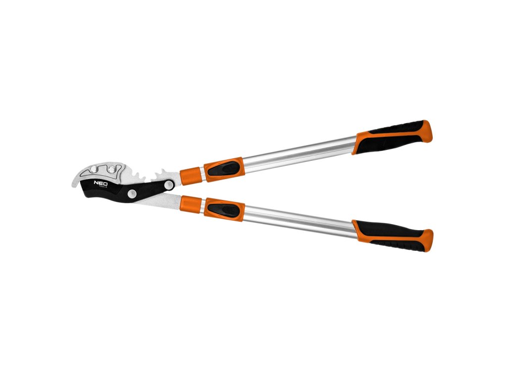 Kovadlina na konáre 670 mm, rozsah do 42 mm, prevodovka, teleskopické rukoväte 15-254 od NEO TOOLS je profesionálny nástroj na prácu v záhrade s vyššími rastlinami bez nutnosti použitia rebríka. Ľahké teleskopické hliníkové ramená vám umožnia držať náradie vo výške bez toho, aby ste si namáhali svaly. Dodatočné pokrytie rukovätí protišmykovým bikomponentným materiálom má pozitívny vplyv na bezpečnosť v rukách. Prerezávač je vhodný na konáre s maximálnym priemerom 42 mm. Valčeková páková prevodovka zvyšuje rezný výkon o 60 %. Vybavenie kovadlinkovým systémom pozitívne ovplyvňuje presnosť a rýchlosť práce. Čepele záhradných nožníc sú potiahnuté nepriľnavou vrstvou a sú vhodné na strihanie tvrdého a suchého dreva. Náradie odporúčané pre profesionálov aj nadšencov do záhradkárčenia.