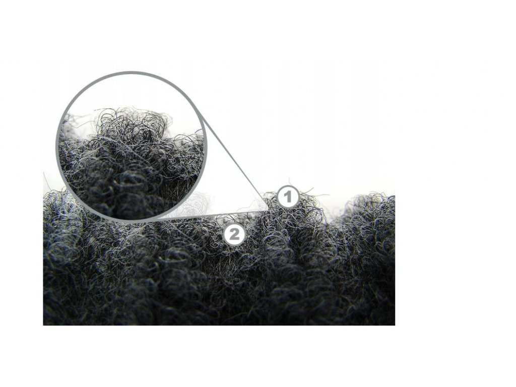 Vlákna rohožky sú vyrobené z dvojitej priadze. Slučkovité vlákna zachytávajú vlhkosť a sú tiež skvelé pri zachytávaní nečistôt. Medzi vyššími časťami rohožky sú pevné vlákna, ktoré skvele udržia nečistoty.