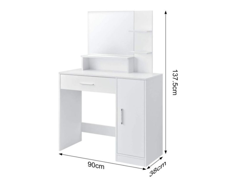 Líčenie bude odteraz veľká zábava. Toaletný stolík je vybavený priestranným úložným miestom na vaše líčidlá, očné tiene, rúže či šperky. Tešiť sa môžete z poličiek a zásuvky, do ktorej si môžete schovať celú zbierku vašej kozmetiky a doplnkov. Budete ich mať stále poruke, navyše krásne usporiadané a pokope.