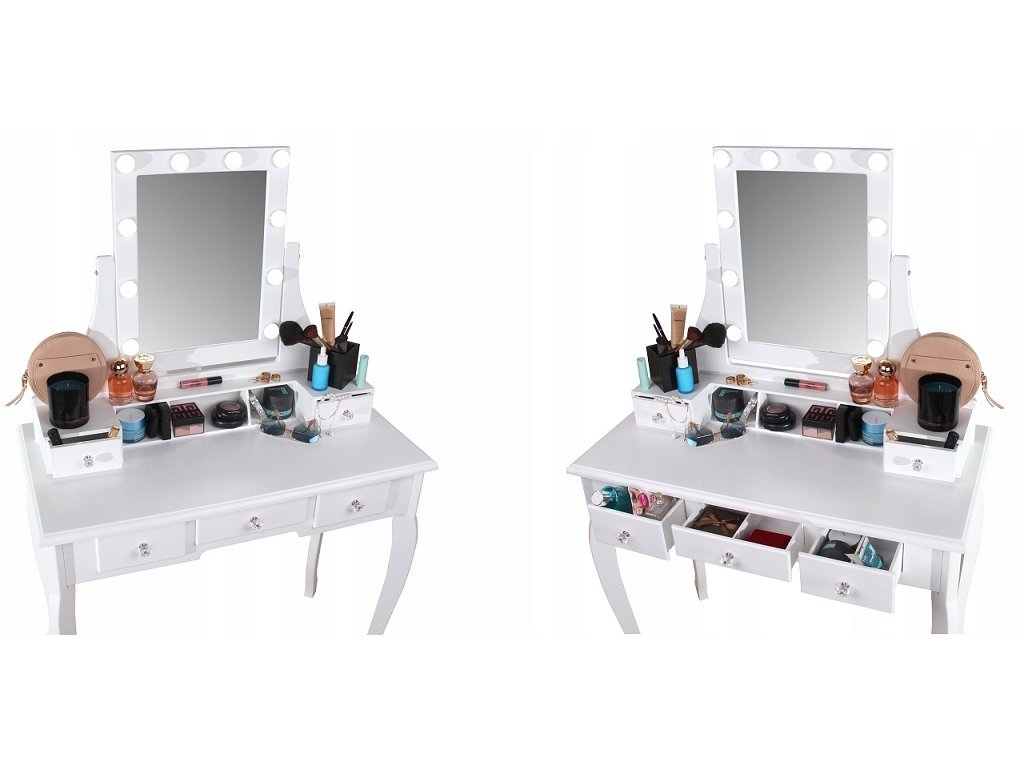 Líčenie bude odteraz veľká zábava. Toaletný stolík je vybavený priestranným úložným miestom na vaše líčidlá, očné tiene, rúže či šperky. Tešiť sa môžete z veľkorysého priestoru zásuviek, do ktorých môžete schovať celú zbierku vašej kozmetiky a doplnkov. Budete ich mať stále poruke, navyše krásne usporiadané a pokope.
