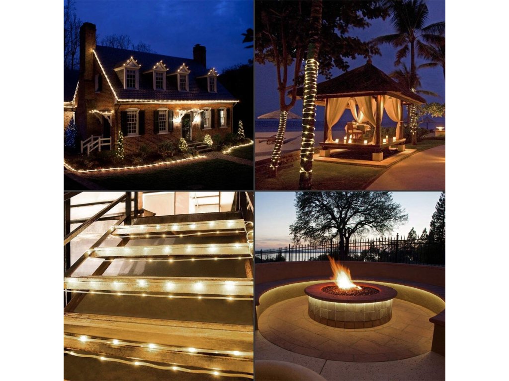 Svetelná LED reťaz s teplým bielym podsvietením skrášli každý vianočný stromček, domov aj záhradu a dotvorí pravú vianočnú atmosféru. Jedinečné svietiace budovy spríjemňujú večerné prechádzky a vytvárajú úžasnú atmosféru. Vďaka flexibilite a možnosti tvarovania môžete vytvoriť mnoho efektných dekorácií. Podľa najnovších trendov je svetelná reťaz - svetelný had perfektným spôsobom ako vyzdobiť byt po celý rok - príjemná ozdoba pri večernom sedení na gauči. Svetelná hadica sa používa aj ako ozdoba počas narodeninových osláv, na záhradnú párty, alebo svadobnú hostinu. Svetelné reťaze vytvárajú jedinečnú romantickú atmosféru.