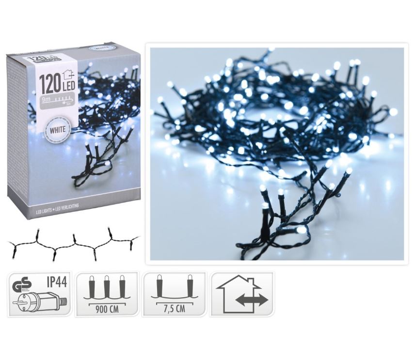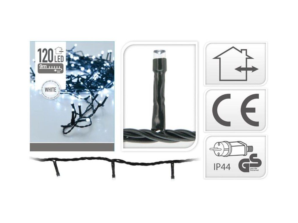 Svetelná vianočná reťaz 9m - 120 LED studená biela vnútorná/ vonkajšia