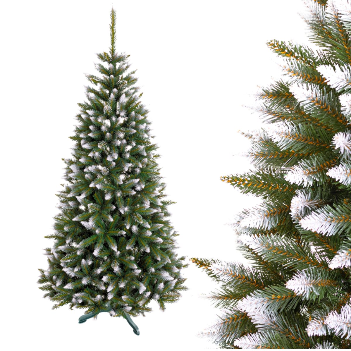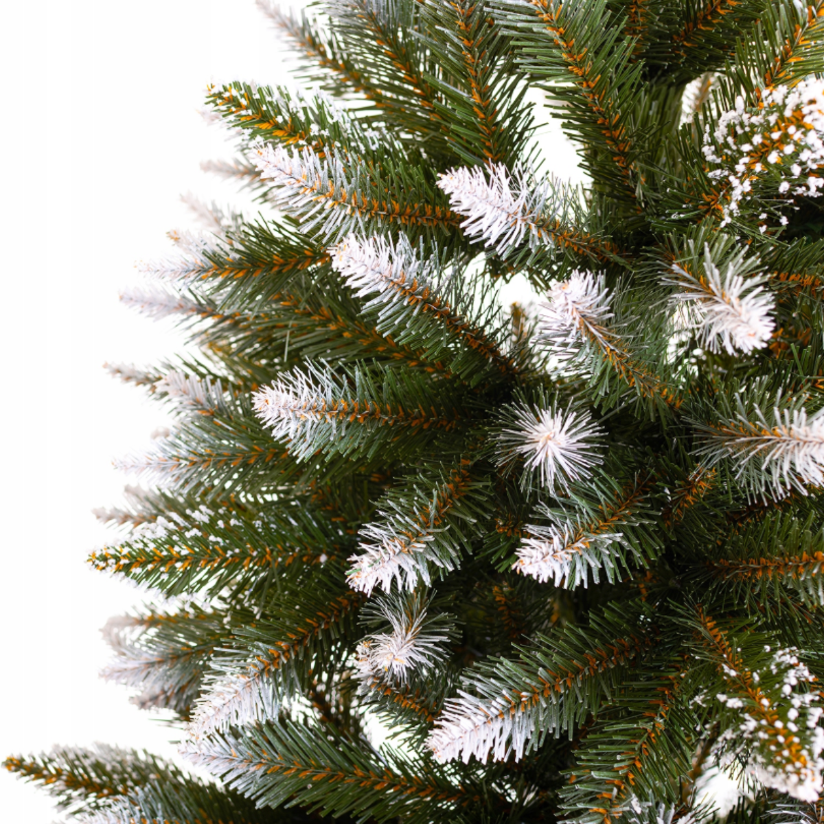 - Umelý vianočný stromček smrek je ako živý, pretože jeho farba je realistická a flexibilné vetvy sa dajú formovať ľahko a podľa vašich predstáv. Vetvy sú stabilné a pevné, teda sa nebudú prepadávať pod váhou vianočných ozdôb. Realistické ihličie luxury diamond je vyrobené z PVC materiálu, vďaka tomu je mäkké, dlhé a príjemné na dotyk. Rada luxury diamond sa vyznačuje efektom zasneženého stromčeka s kryštálikmi snehu.