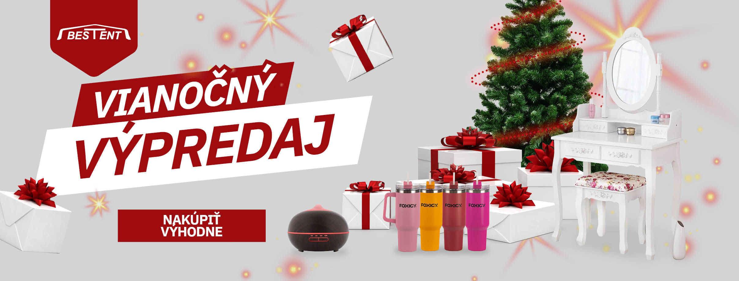 🎄 Vianočný výpredaj na Bestent.sk je tu! Nájdite perfektné darčeky pre každého člena rodiny – darček pre mamu, otca, muža, ženu, sestru či deti. Objavte najhustejšie umelé vianočné stromčeky, výzdobu, svetielka, elegantné toaletné stolíky, praktické termohrnčeky aróma difuzéry pre útulnú atmosféru a mnoho ďalších produktov za výhodné ceny. Hľadáte darček pre kamarátku, starú mamu alebo kolegu? U nás nájdete široký výber nápadov, ktoré potešia každého. Kvalitné produkty, skvelé ceny a rýchle doručenie až k vám domov! Nakupujte ešte dnes na Bestent.sk a užite si pokojné Vianoce bez stresu.