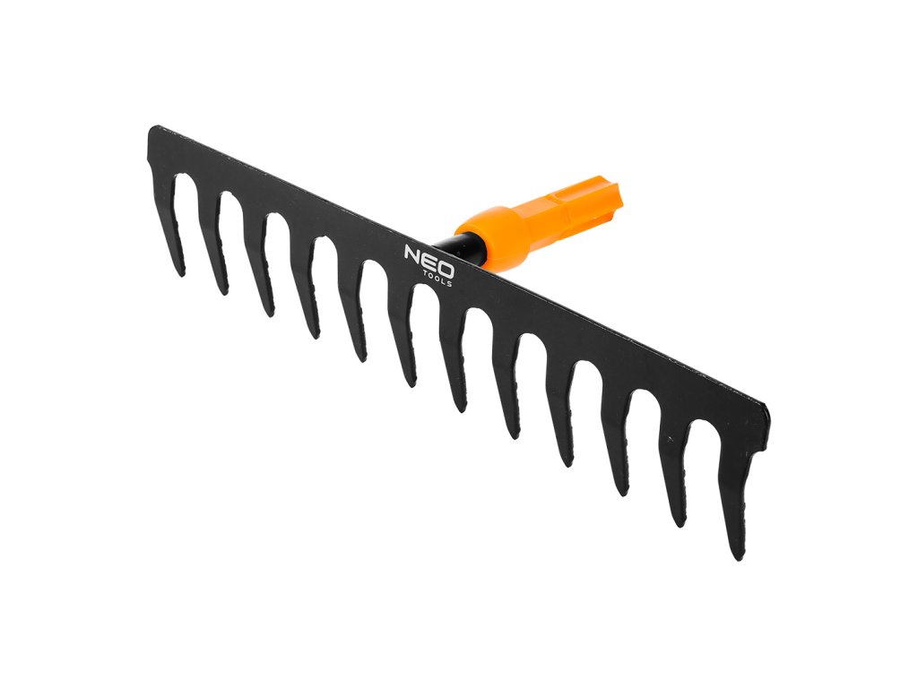12-zubové hrable. NEO Click System 95-064 od spoločnosti NEO TOOLS sú praktické hrable, ktoré patria do série NEO Click System - série záhradného náradia s vymeniteľnými násadami, vďaka čomu šetria miesto pri skladovaní, sú úsporné a viacúčelové. Hráble sú vybavené 12 hrotmi s hrúbkou 2 mm a odporúčajú sa na prípravu pôdy, starostlivosť o trávnik alebo odstraňovanie buriny. Ich dĺžka 130 mm a šírka pracovnej časti 350 mm uľahčujú vykonávanie úloh. Výroba z uhlíkovej ocele a PP nástavec prispievajú k viacsezónnej životnosti. Hrable NEO TOOLS s 12 hrotmi sú produktom, ktorý sa osvedčí v každej záhrade.