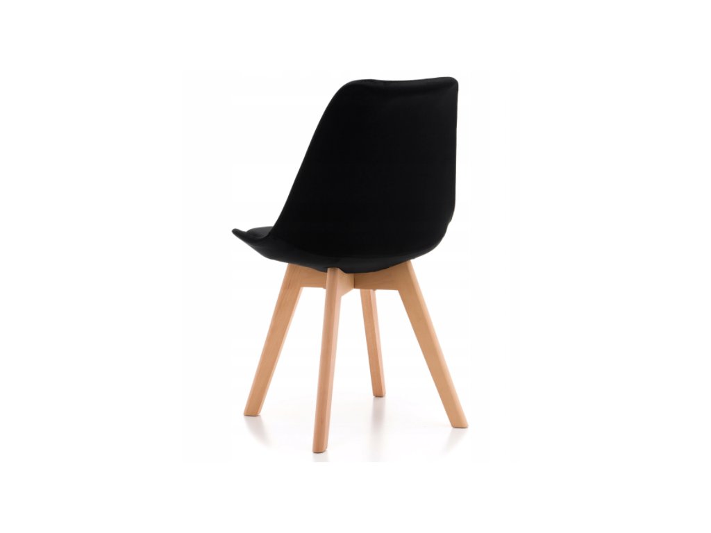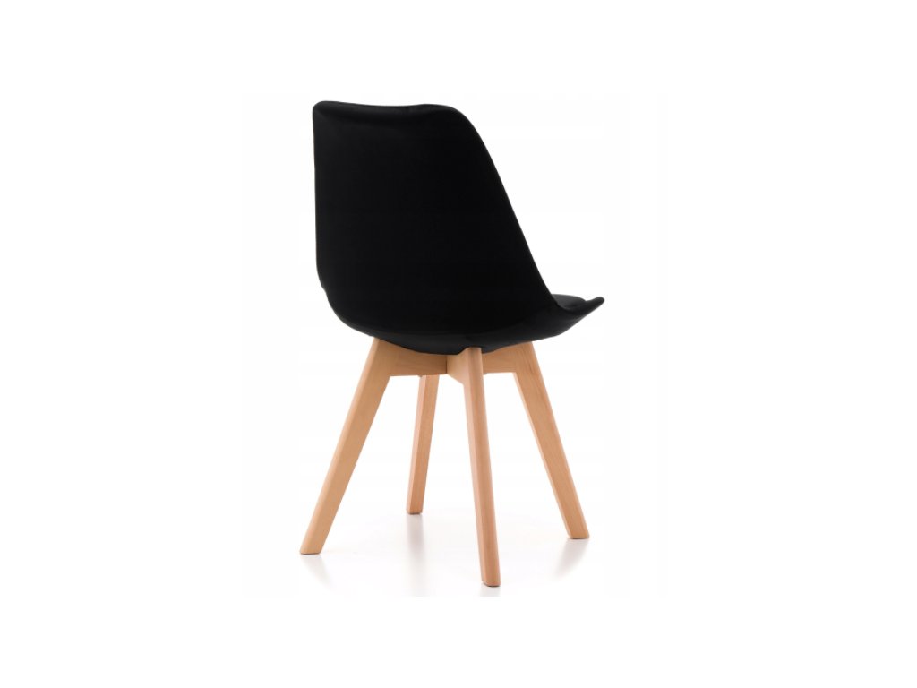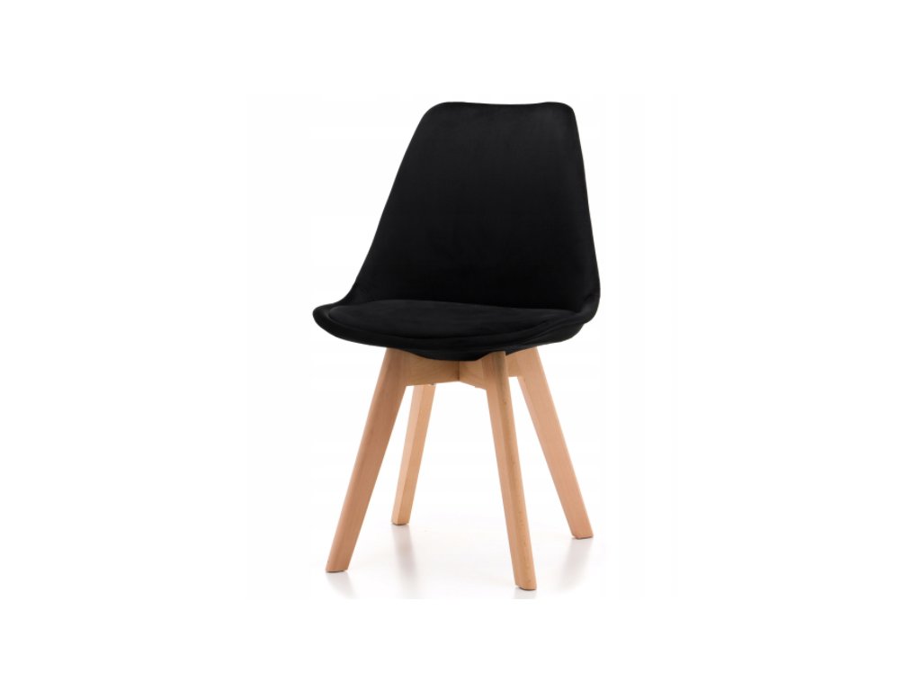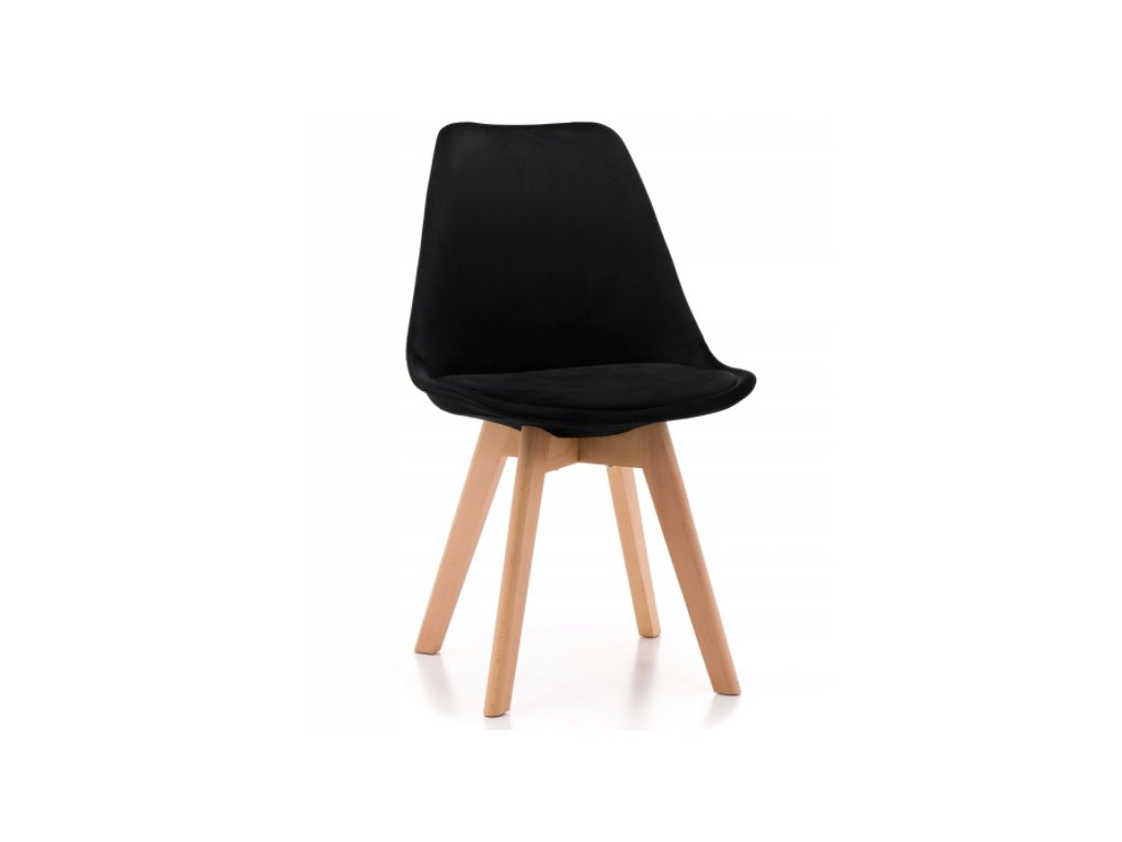 Elegantná zamatová stolička v škandinávskom štýle. Luxusná čierna farba dodá štýl každej miestnosti. Krásna a elegantná stolička v zaujímavom dizajne, kvalitné spracovanie zabezpečuje pohodlnosť a štýl produktu. Sedadlo a operadlo sú pokryté velúrovou textíliou. Drevené nohy dodávajú každému bytu jedinečný efekt a pocit tepla. Nohy majú ochranu pred poškodením podlahových panelov, drevených podláh, lakovaných povrchov a keramických podláh. Ergonomicky tvarované sedadlo poskytne pohodlie pri sedení.