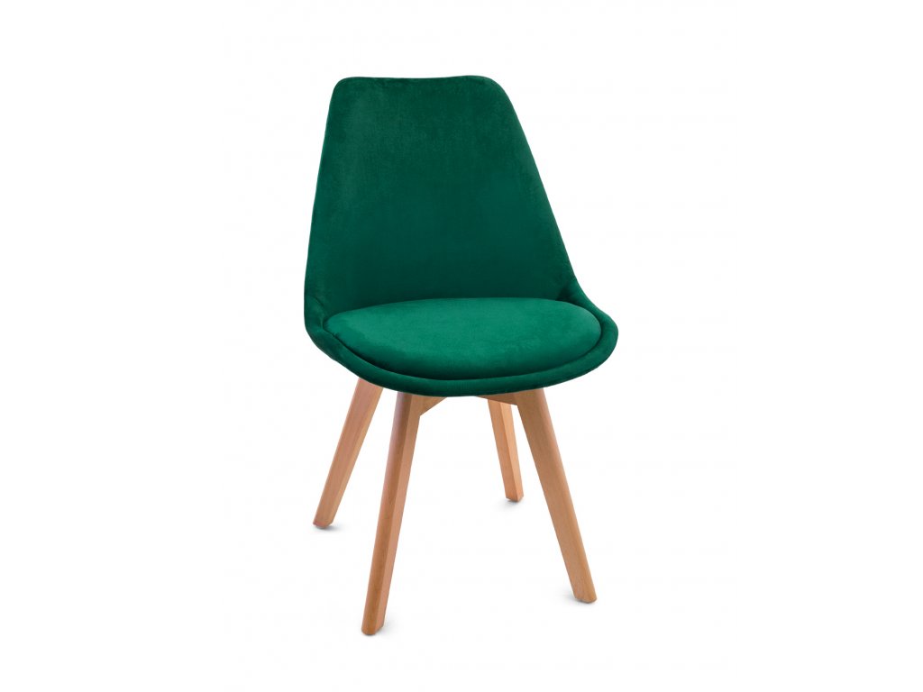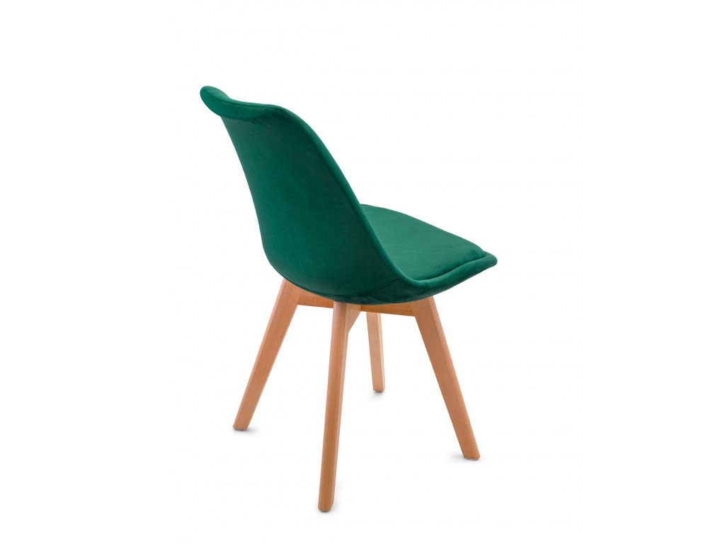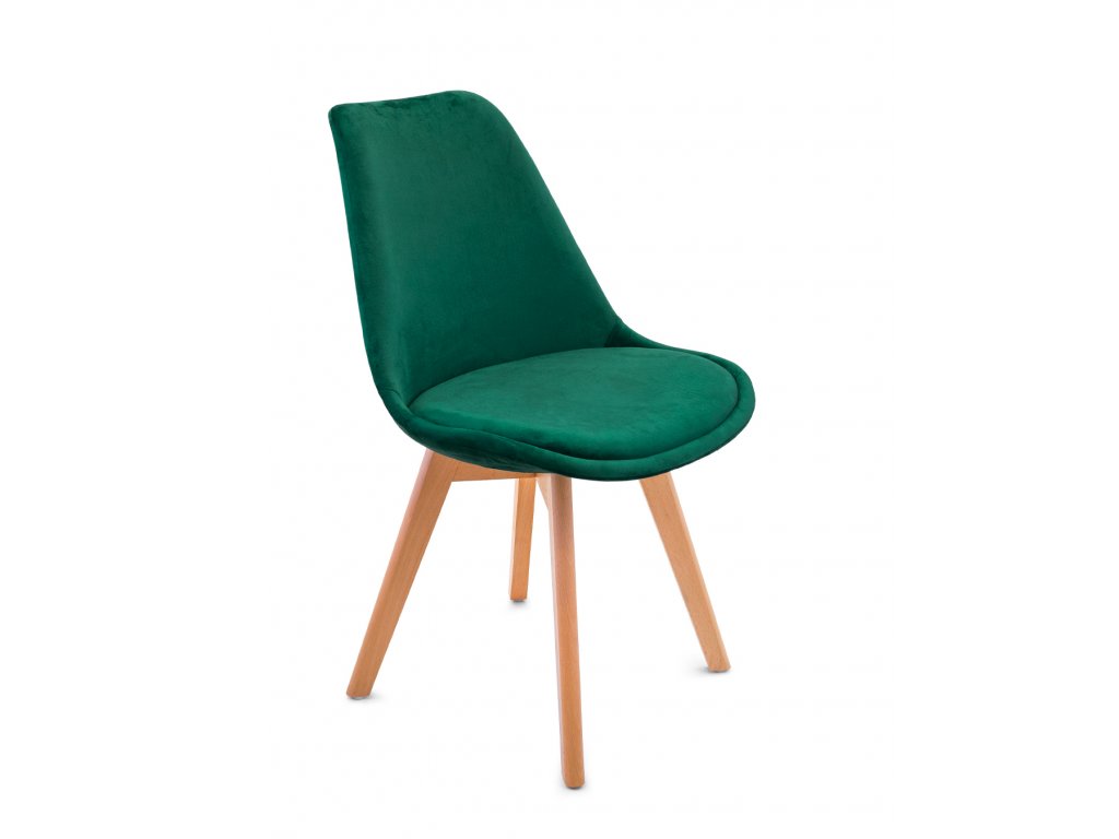Elegantná zamatová stolička v škandinávskom štýle. Štýlová zelená farba dodá štýl každej miestnosti! Krásna a elegantná stolička v zaujímavom dizajne, kvalitné spracovanie zabezpečuje pohodlnosť a štýl produktu. Sedadlo a operadlo sú pokryté velúrovou textíliou. Drevené nohy dodávajú každému bytu jedinečný efekt a pocit tepla. Nohy majú ochranu pred poškodením podlahových panelov, drevených podláh, lakovaných povrchov a keramických podláh. Ergonomicky tvarované sedadlo poskytne pohodlie pri sedení.