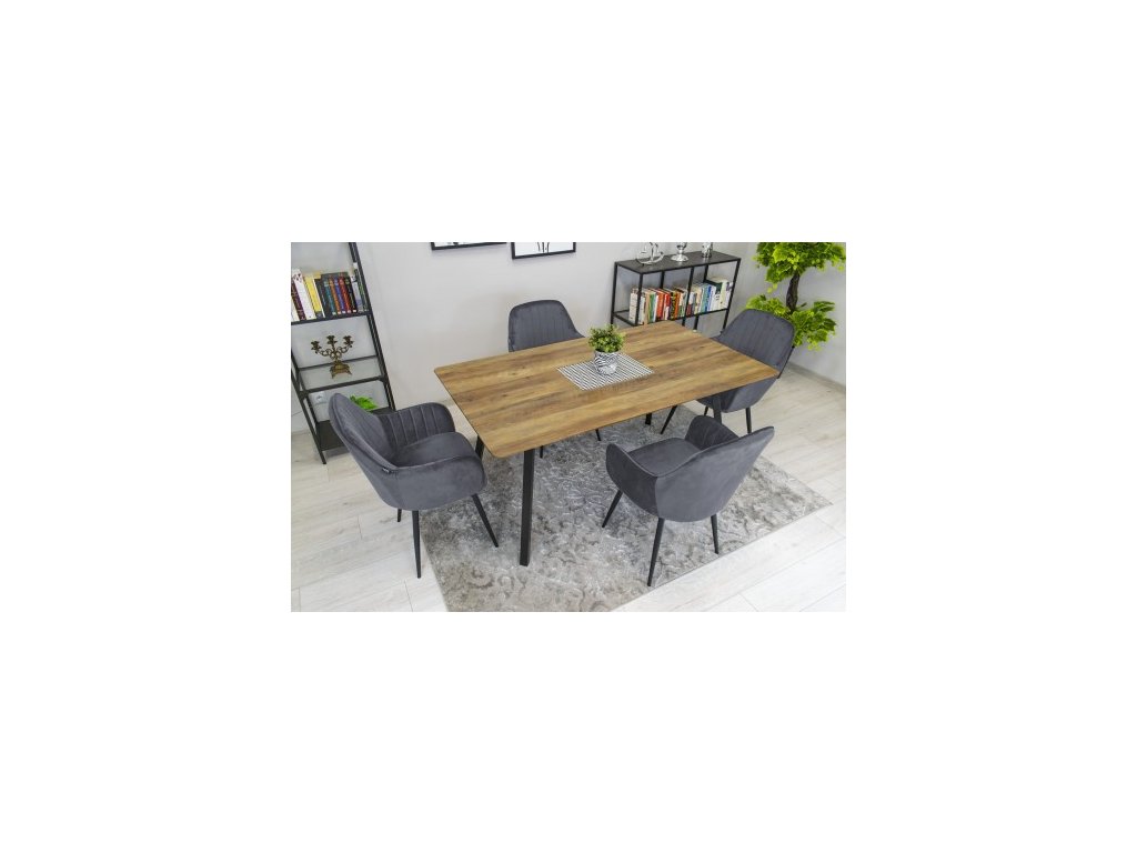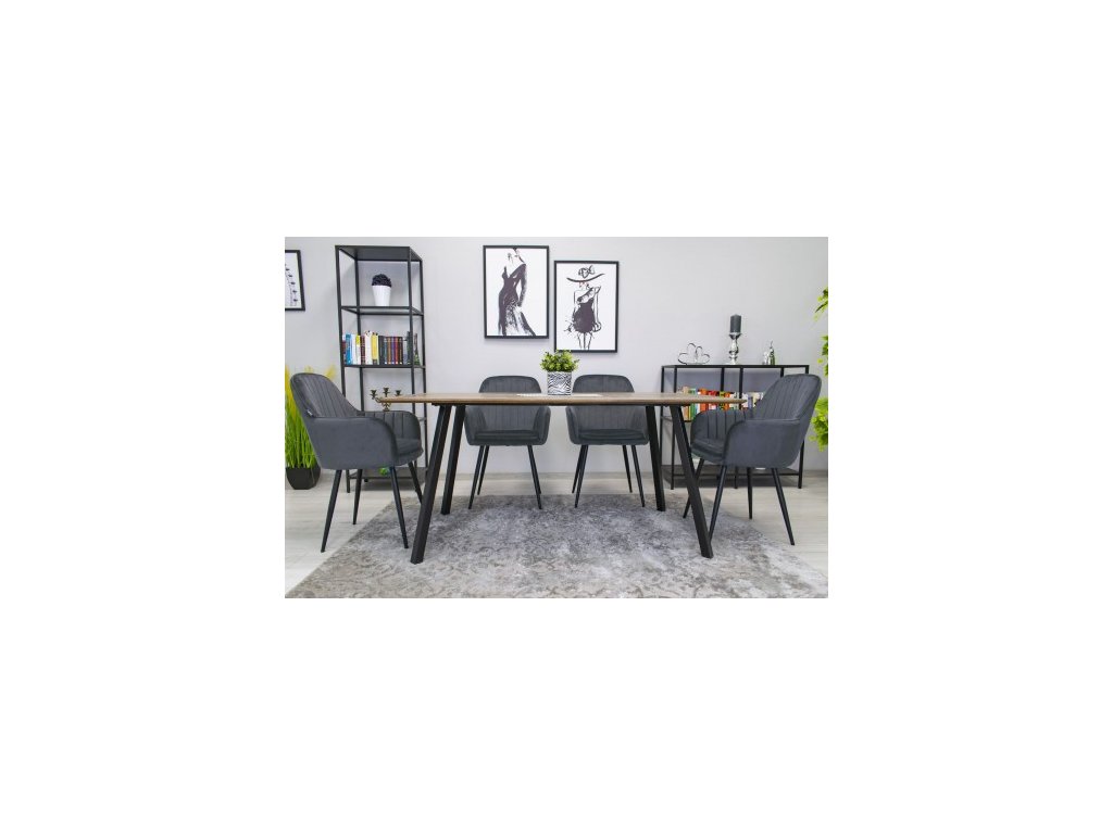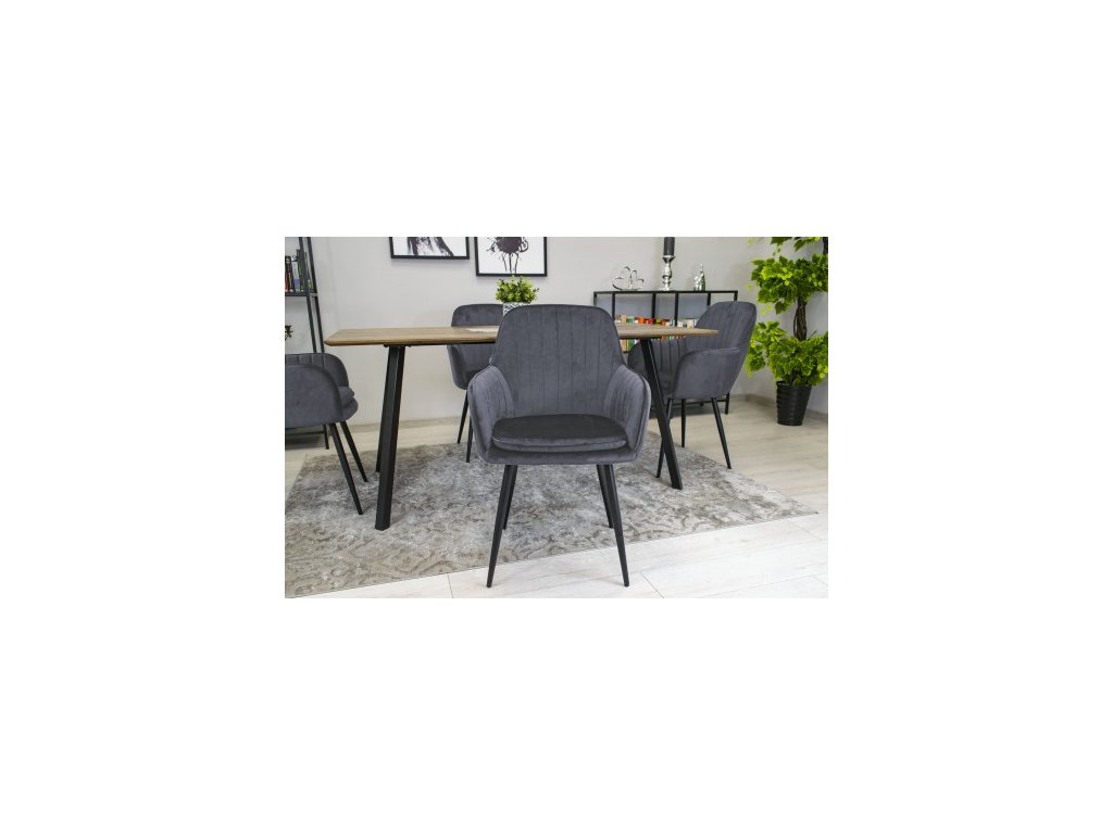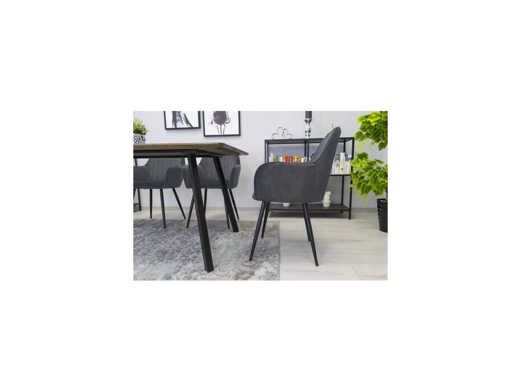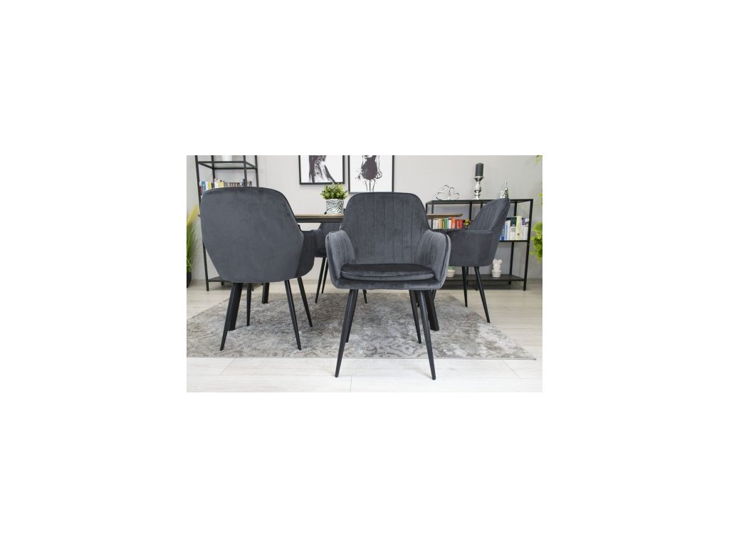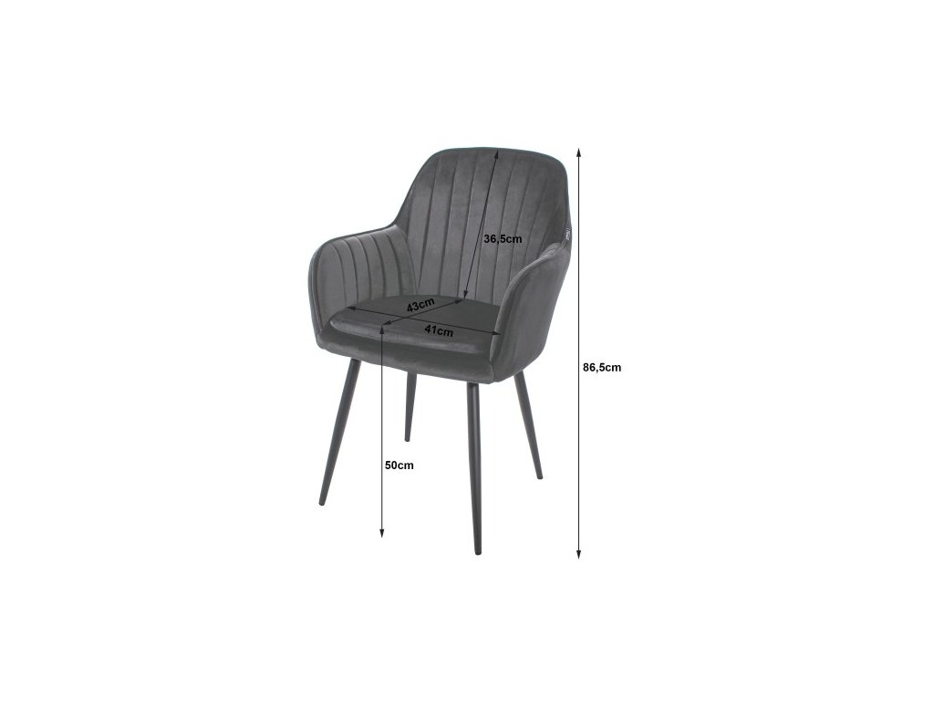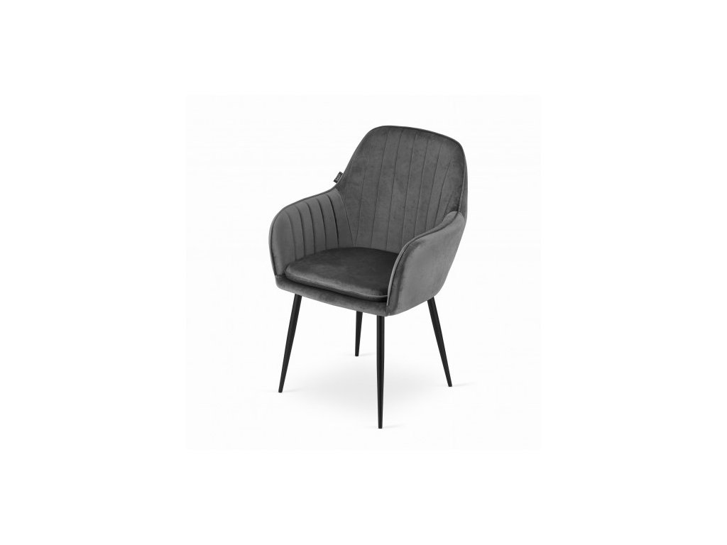Čalúnená zamatová stolička v tmavošedej farbe kombinuje krásny dizajn, ktorý prihliada aj na funkčnosť. Vďaka prepracovanému dizajnu je stolička elegantná, moderná, funkčná a najmä pohodlná. Stoličku môžete použiť v každej miestnosti – môžete ju využiť ako farebný doplnok v obývacej miestnosti, ako jedálenskú stoličku, je vhodná aj do kancelárie alebo pracovne. Dolná časť stoličky je vyrobená z kovu. Tvarované operadlo zabezpečí pohodlie a oporu pre váš chrbát aj počas dlhého sedenia.